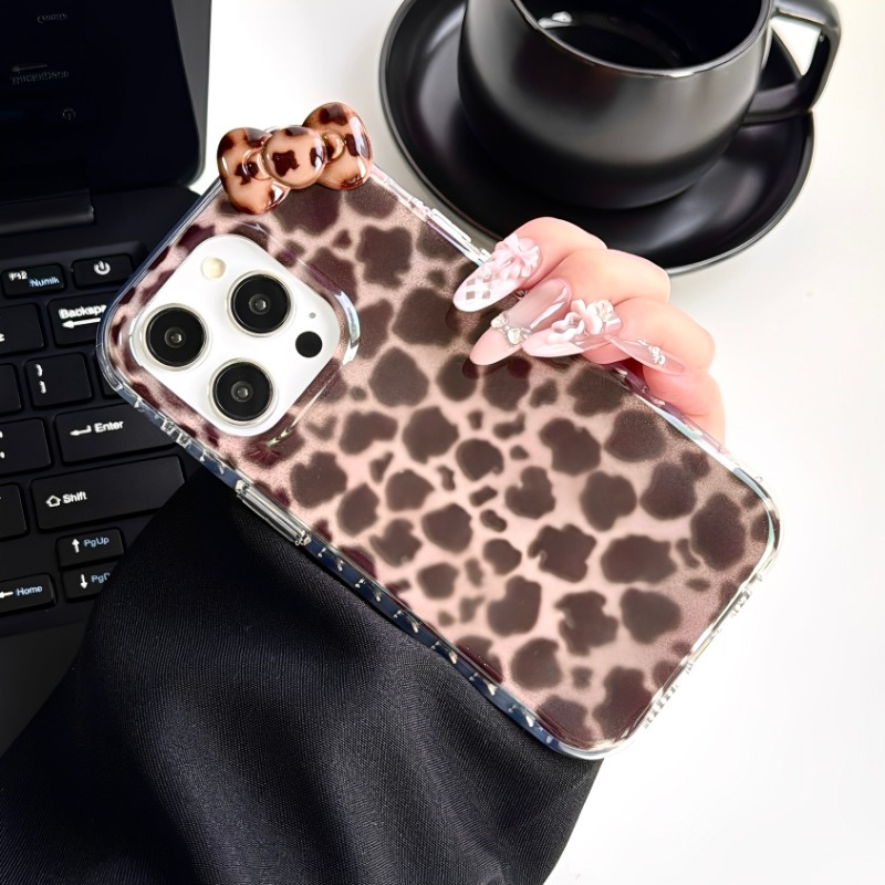 • Pink and Brown Contrast Leopard Print Double Layer Phone Case For iPhone
